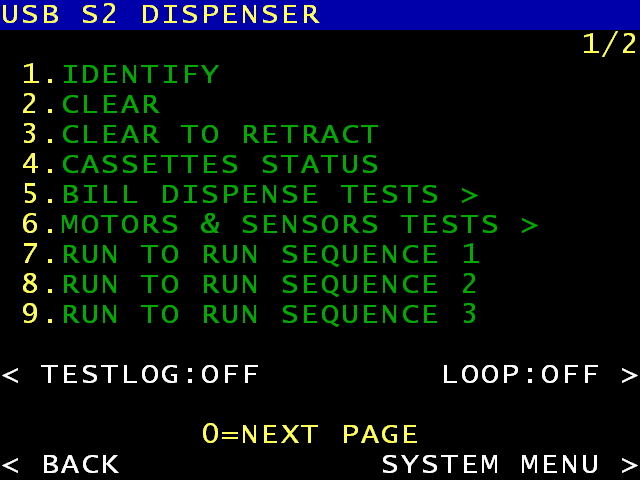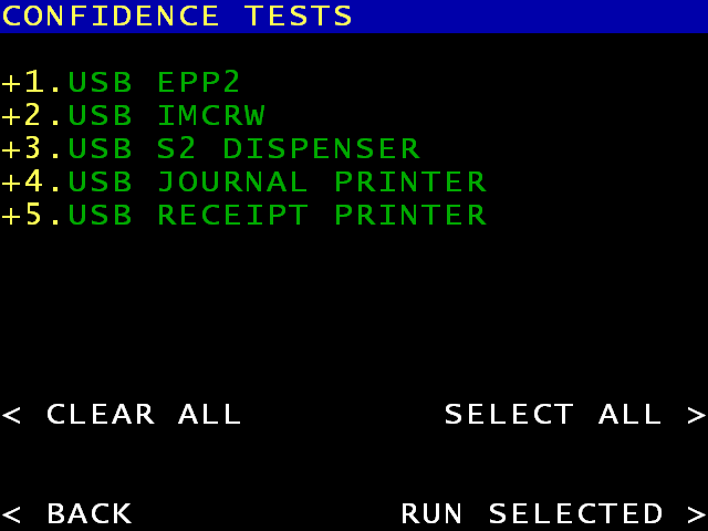 При выборе CONFIDENCE TESTS вы можете быстро произвести общую проверку банкомата перед переводом его обратно в рабочий режим.